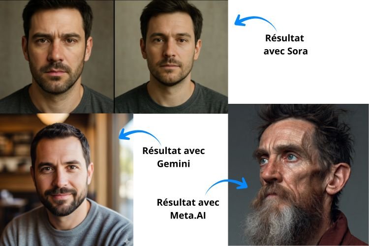 • Sora modifie systématiquement le visage, même si la consigne explicite est de ne pas toucher à la photo. C’est un défaut majeur dans le cadre d’une miniature.
