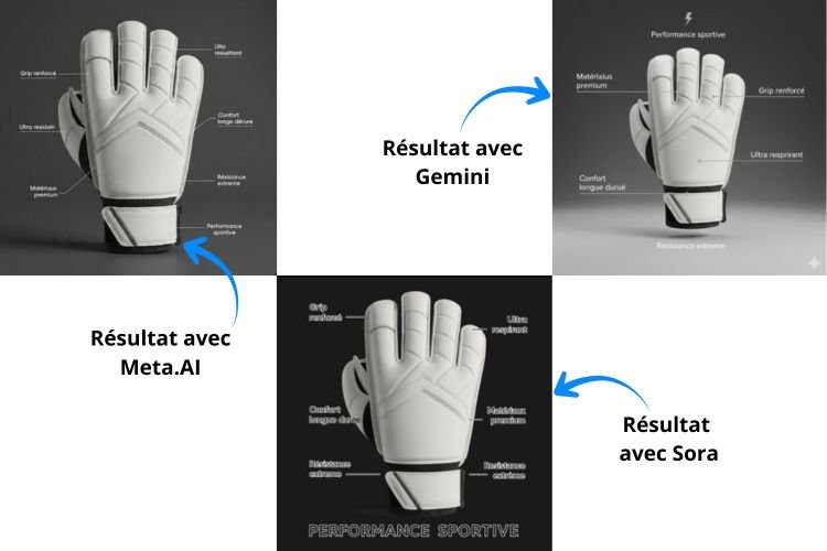 Le test consistait à envoyer la même image à chaque IA et leur demander de créer un visuel esthétique pour une fiche produit.