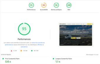 Optimisation technique drastique permettant au site de se charger en 0,6 seconde, garantissant une expérience utilisateur fluide et un référencement favorisé.
