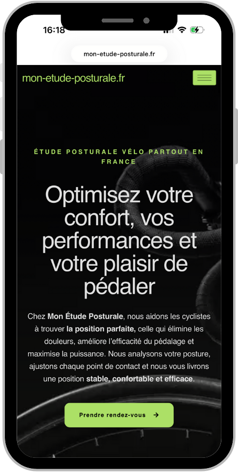 Mon Étude Posturale est un site de mise en relation qui s’adresse aux cyclistes de tous niveaux (route, VTT, triathlon, cyclo-cross). Elle permet aux pratiquants de trouver un expert pour optimiser leur position sur le vélo, améliorer leur confort et booster leurs performances.