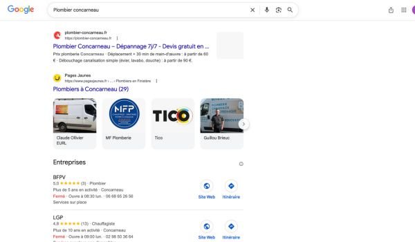 ous êtes artisan plombier, chauffagiste ou climaticien et vous souhaitez générer plus d’appels dans votre ville ? Comme pour Plombier Concarneau, nous créons des sites conçus pour le lead et le référencement local.